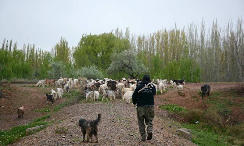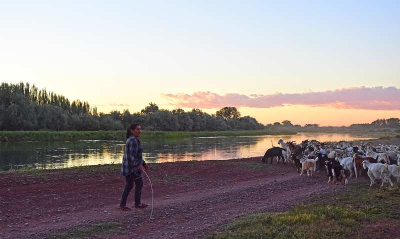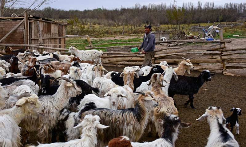 Años atrás le asignaron una vivienda de plan en Cinco Saltos, a 10 km, pero nunca se acostumbró al pueblo y con la calefacción a gas vivía con anginas, así que un día se volvió al puesto y nunca más se fue. “Este es nuestro lugar, acá nos sentimos bien”, cuenta mientras mira a las chivas recién nacidas, busca a un guacho para darle la mamadera y Marta Osés camina hacia el corral, mate y tortas fritas en una bandeja, rodeada de perros que mueven la cola y un gato infiltrado que no parece correr riesgos.