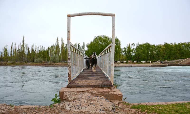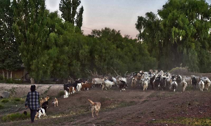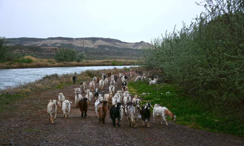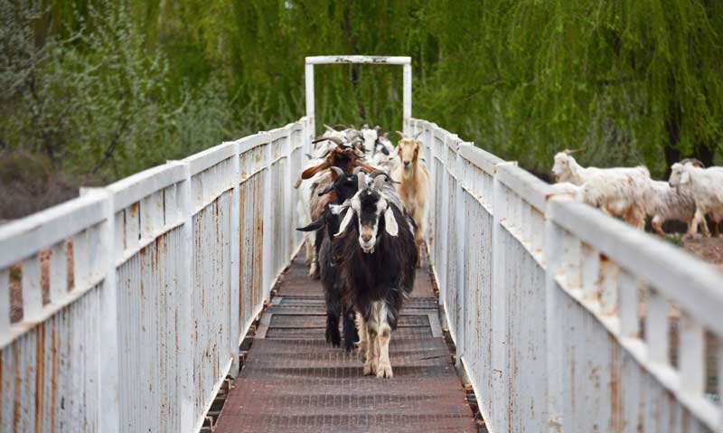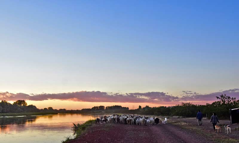 Él las sigue en su vieja bicicleta roja, entre los olivillos y los álamos. Y si hace falta, larga un grito profundo para ordenar el rebaño, aunque a veces se le retoba para cruzar el puente, hasta que se manda una y las otras la siguen. Después esconde la bici entre los árboles y camina tranquilo, mientras ellas pastan bajo la mirada atenta de María Auxiliadora, patrona de la producción.
